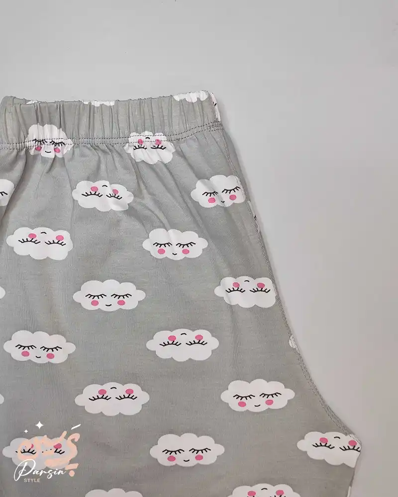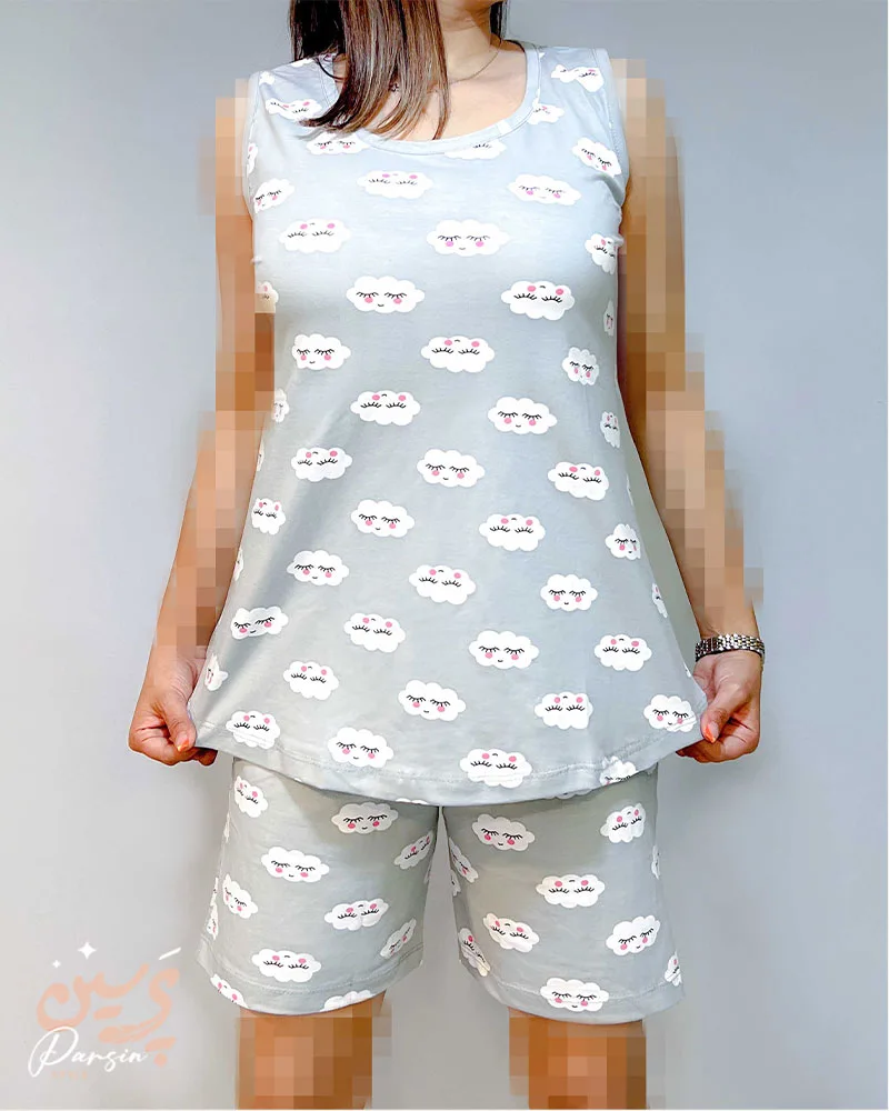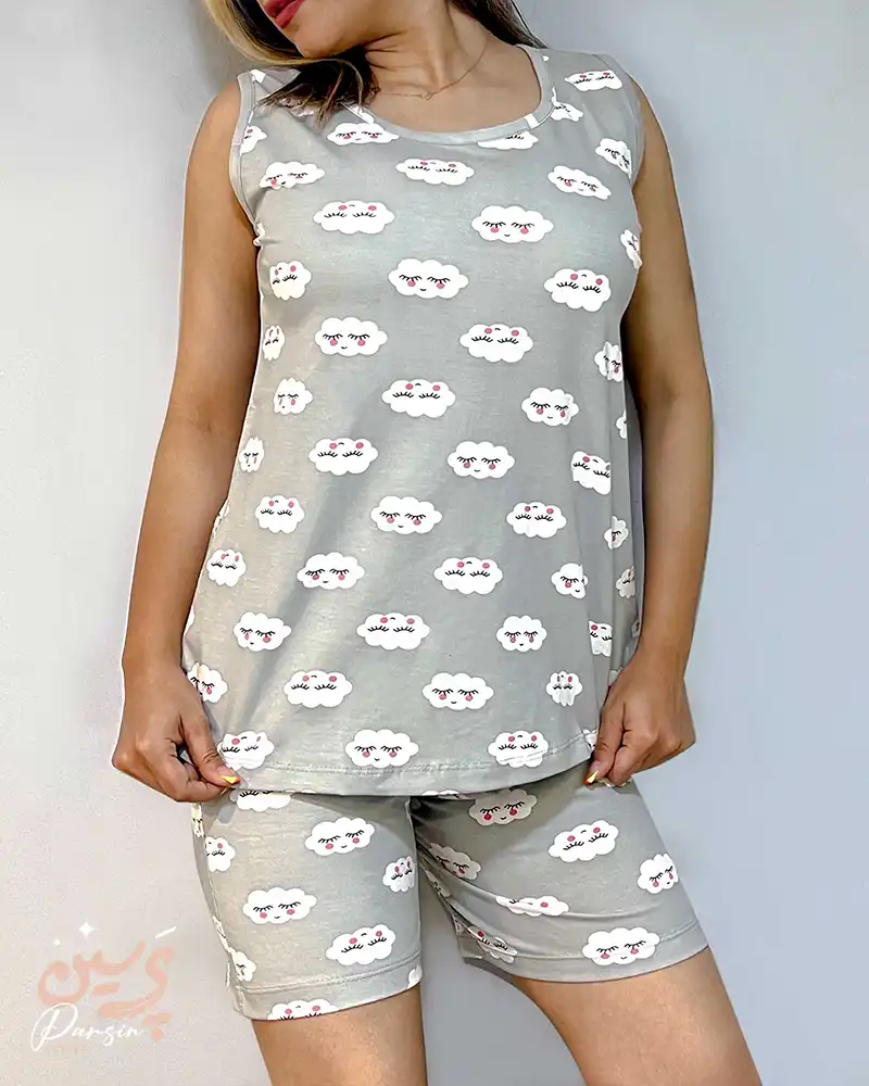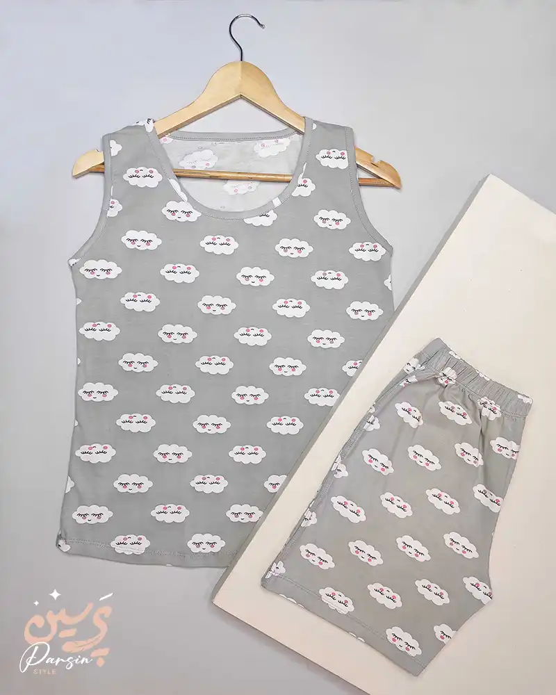ست تاپ و شلوارک طرح ابر پنبه با طرح ابر مجموعهای از لباسهای زیر و راحت برای استفاده روزمره است. این ست شامل یک تاپ و یک شورتک است که هر دو از پنبه بافته شدهاند.