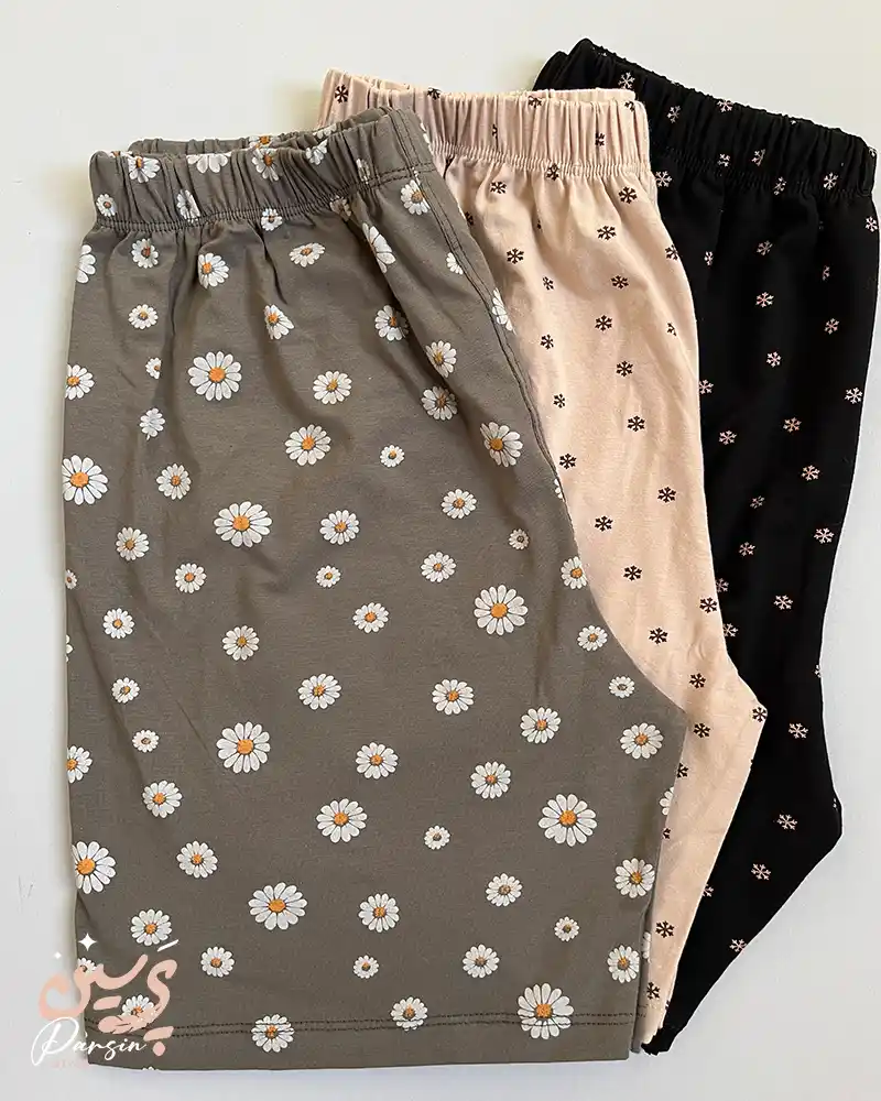 شلوارک پنبه تمام چاپ در چهار رنگ شاداب و جذاب مشکی، صورتی، نوک مدادی و یشمی عرضه میشود. شما میتوانید با توجه به سلیقهی خود و دیگر لباسهایتان، رنگ مورد نظرتان را انتخاب کنید.
